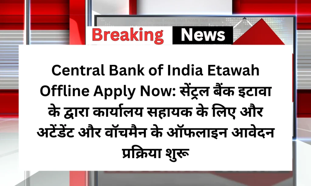 Central Bank of India Etawah के द्वारा ऑफिशियल तौर पर एक नई भर्ती का नोटिफिकेशन जारी किया गया है। इस