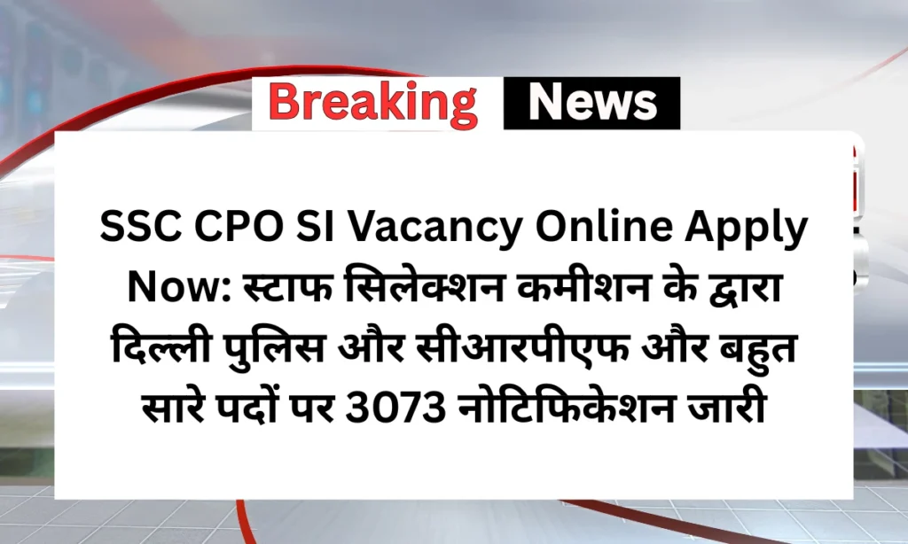 SSC CPO SI Vacancy Online Apply Now: स्टाफ सिलेक्शन कमीशन के द्वारा दिल्ली पुलिस और सीआरपीएफ और बहुत सारे पदों पर 3073 नोटिफिकेशन जारी