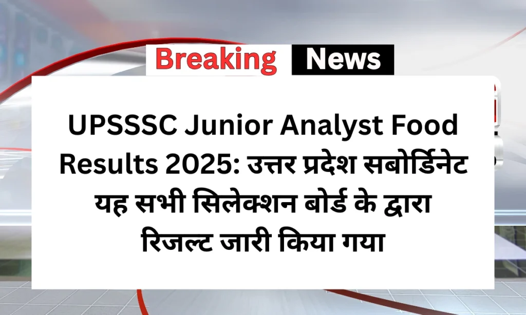 UPSSSC Junior Analyst Food Results 2025: उत्तर प्रदेश सबोर्डिनेट यह सभी सिलेक्शन बोर्ड के द्वारा रिजल्ट जारी किया गया